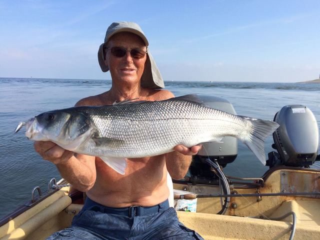 erbij, en weer een prachtige dag.Donderdag 28-7 . Met Stefan bij de dammen er was de vorige dag veel wind , en er zat nog veel zand in het water. Met het opk-tij tot halftij geen tikje , toen het water iets helderder werd het beter. Vooral bij een dam met een keerstroom { neer } was het bingo . Een paar keer stonden wij allebei met een kromme hengel , wel weer veel kleine erbij . Meestal laten wij zoon dam met keerstroom , links liggen nu pakte het heel goed uit . Weer een te gekke dag . Gr-piet.
